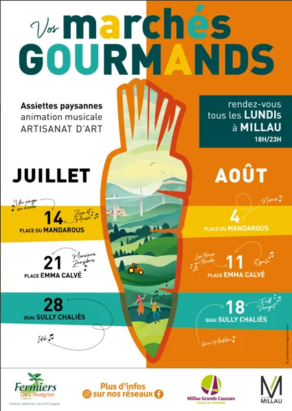 L’été à Millau a ce goût inimitable de terroir, de douceur et de rencontres vraies. Chaque mardi soir, le cœur de la ville s’anime autour des marchés gourmands nocturnes des fermiers de l’Aveyron, et nous sommes heureux d’y participer avec KOMET tout au long de la saison.