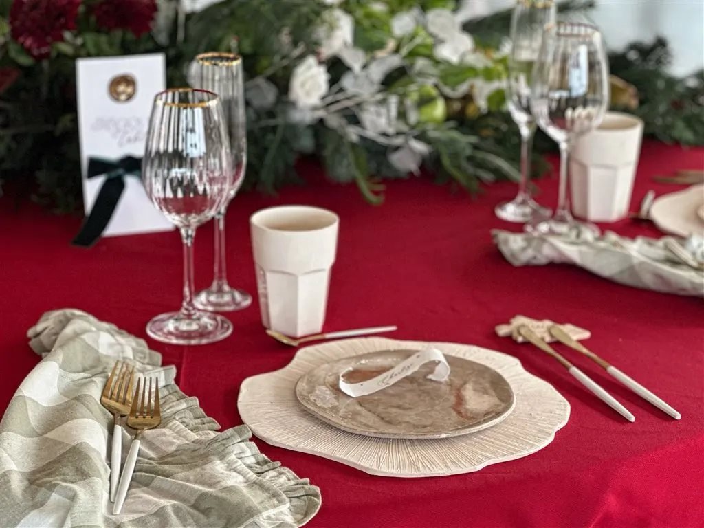Nos assiettes et verres dans : Un Mariage magique pour Noël shooting d’inspiration pour un mariage intimiste, féerique et dans l’ère du temps, créé et imaginé par Daphnée, La MARQUISE ÈVENTS.