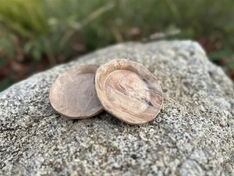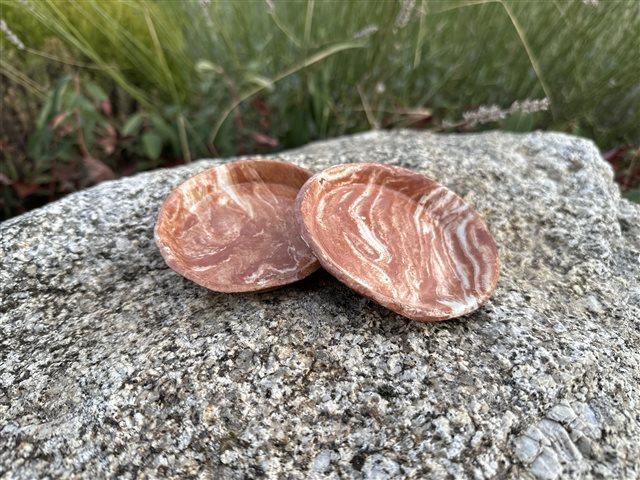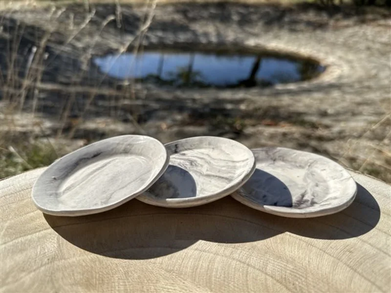 Travaillées à la main uniquement, elles sont le fruit de ce mélange de terre qui nous donne ses veines de couleurs grises/noires, rouges/blanches ou brunes/blanches insolites et aléatoires, telles des marbrures.