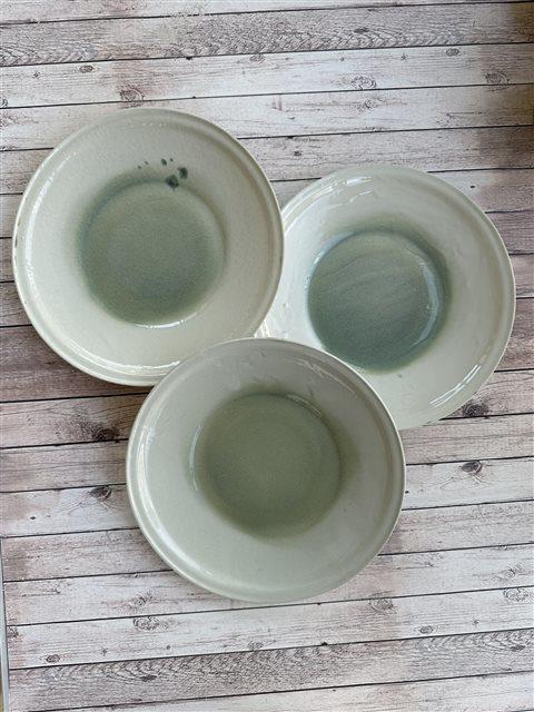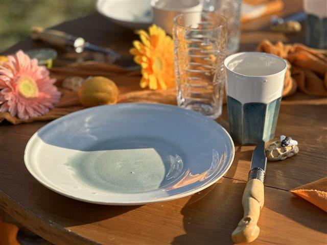 Fabriqué en faïence avec cette légère touche bleutée par coulage, émaillé en vert et transparent, disponible en deux version : Haute et Basse